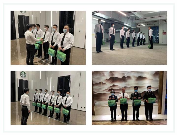 每到一个项目点,公司领导将一盒盒充满浓浓情谊的端午礼品亲自送达每一名队员手中。同时送上节日的问候,并叮嘱他们要牢固树立安全意识,做好守护与防疫双重工作,同时要注意防暑降温和个人安全。